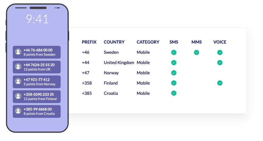 SMS, MMS och röstsamtal till ditt virtuella nummer kostar lika mycket som inrikestrafik i det landet.
