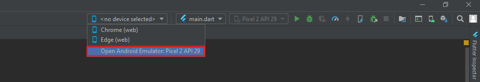 Now we are going to run our Flutter app on a virtual device. The steps differ depending on what setup you use. Select on of the alternatives below and follow the corresponding steps: